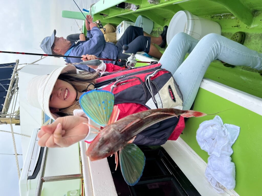 ・7時00分出船(エサ付き)沖上がり13時30分頃。乗船料:8,500円/女性6,500円。